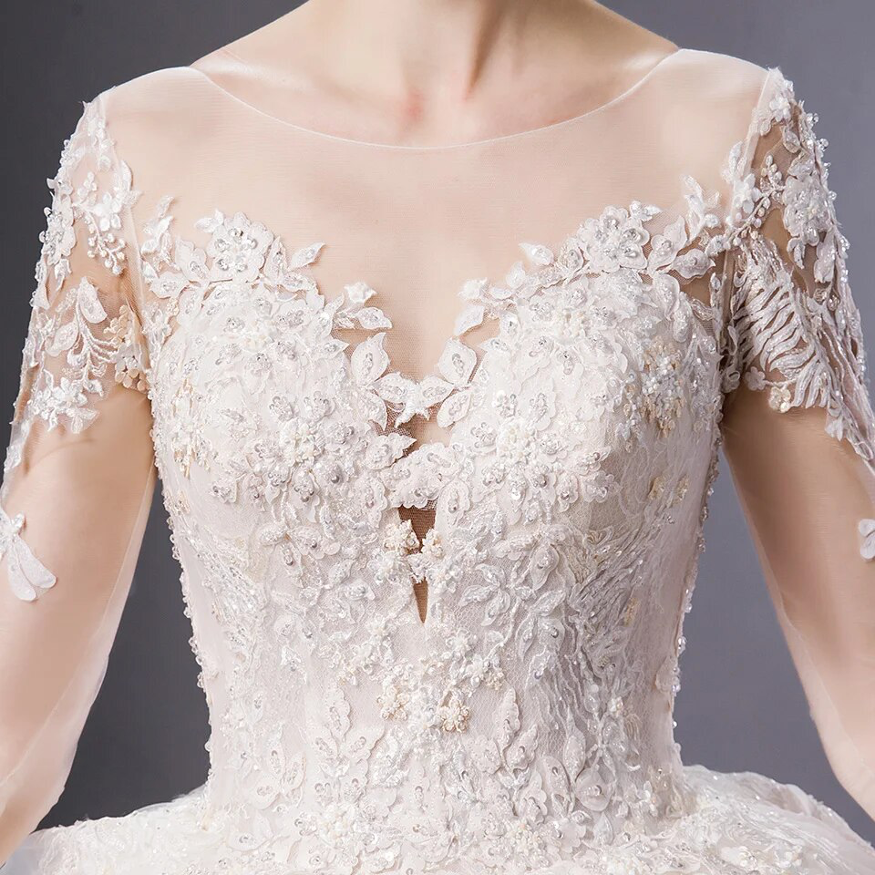Jennifer J At first I did not want a ball gown, but when I saw this dress, I fell in love! This dress is perfect in every way! The material is thick and the lace is spectacular. I never felt more beautiful in my life.