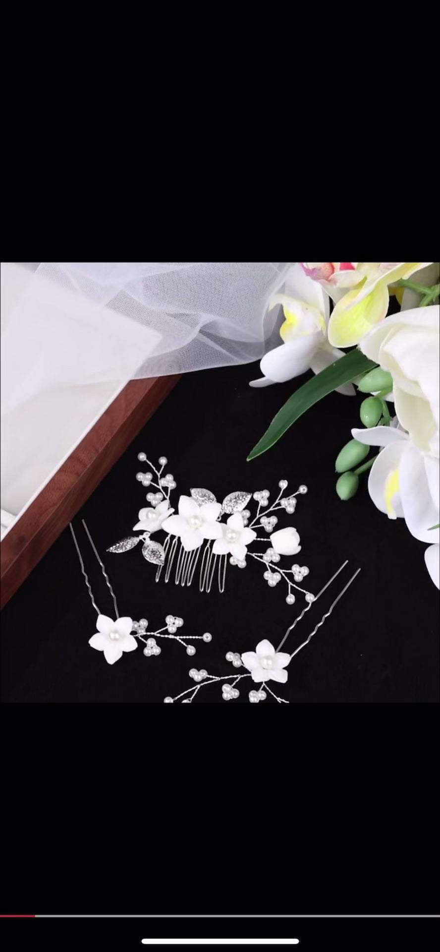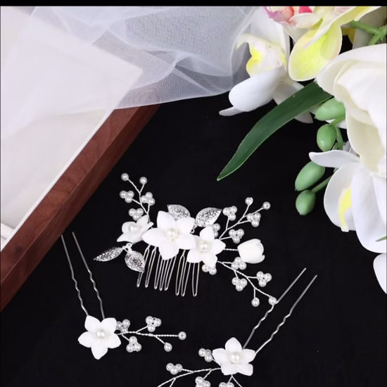 Handcrafted Flower and Pearl Comb and Hairpins (3pcs)